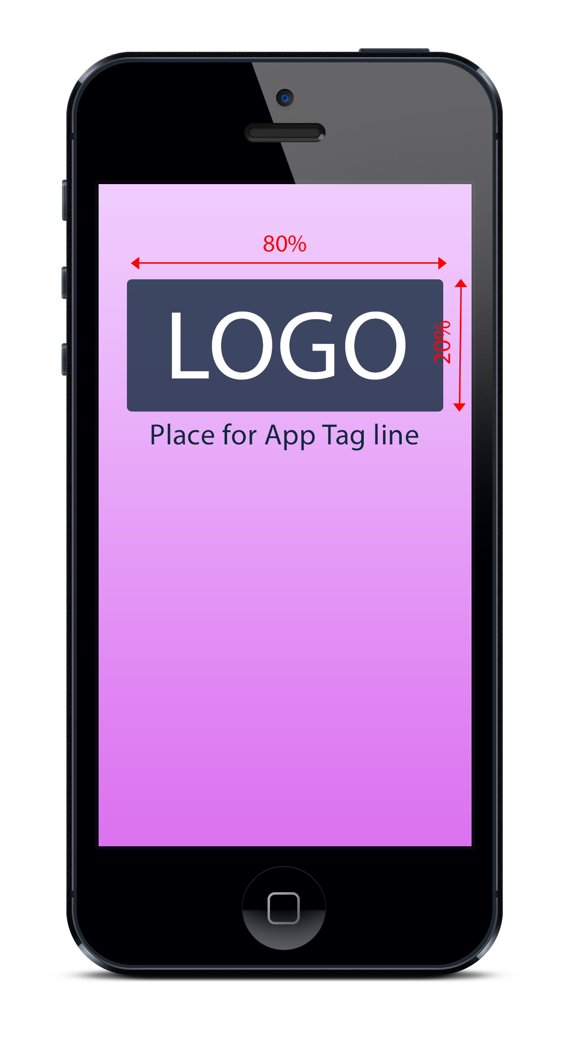 Splash screen sample with Logo and Tagline which covers 20% of the screen area. The logo width is 80% of the splash screen image width and has a height equivalent to 20% of the splash screen image height.